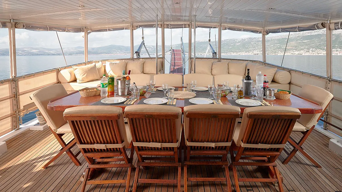 - All-inclusive drink supplement: 470 EUR /person/week (soft drinks and hot beverages, beer, Croatian produced quality wine from boat bar list, also foreign spirits: Bombay Saphire and Tanqueray gin, Absolut and Finlandia vodka, Johny Walker Red Label, Jameson, Sambuca, J. Cuervo Silver tequila, Amaretto, Vermouth, Jägermeister, Malibu, Aperol, Prosecco, Baileys.