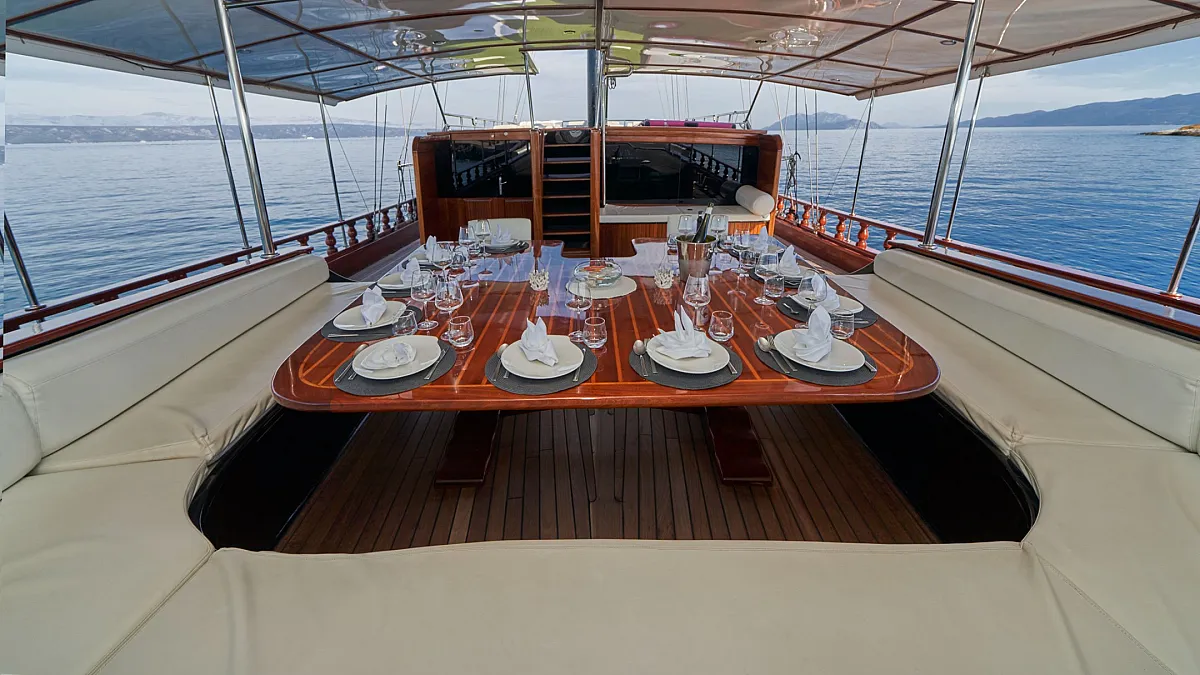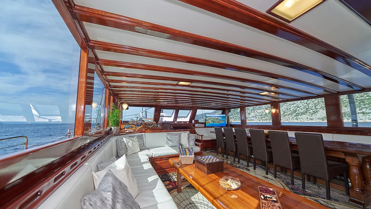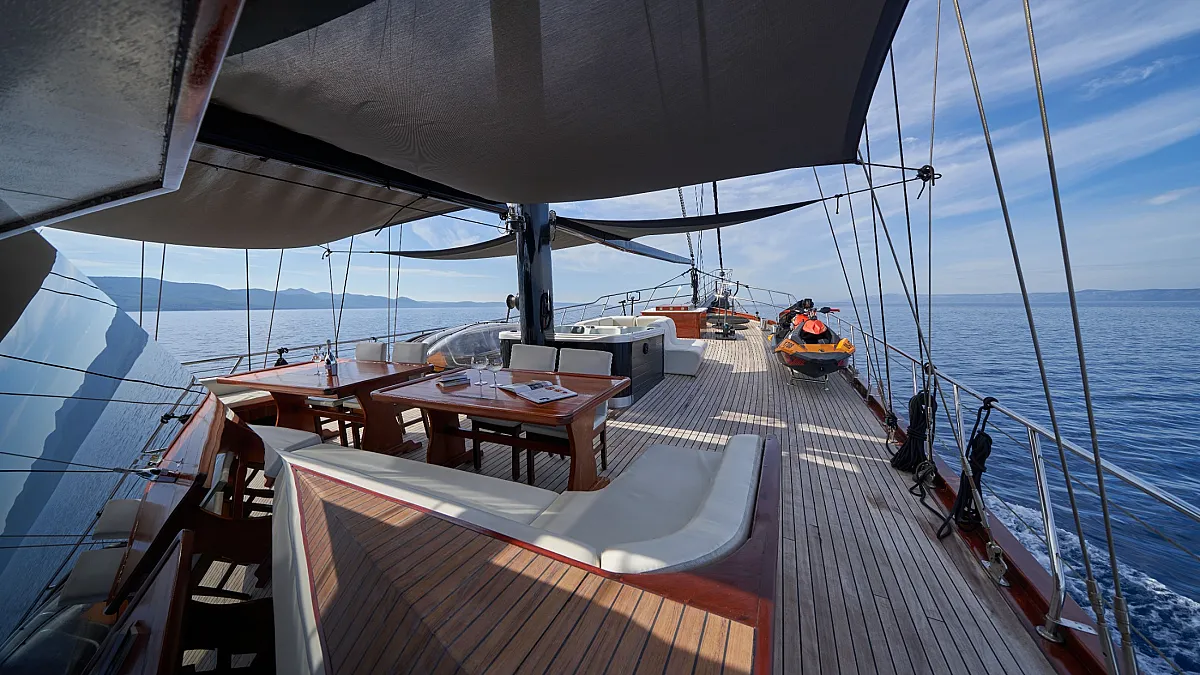 Charter rate includes, accommodation for maximum 16 guests in 8 cabins, crew of 7 and their expenses, insurance of the yacht, use of recreational equipment, tourist taxes, Wi-Fi.