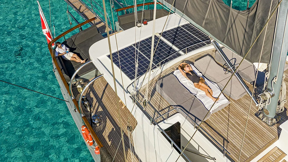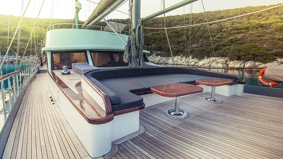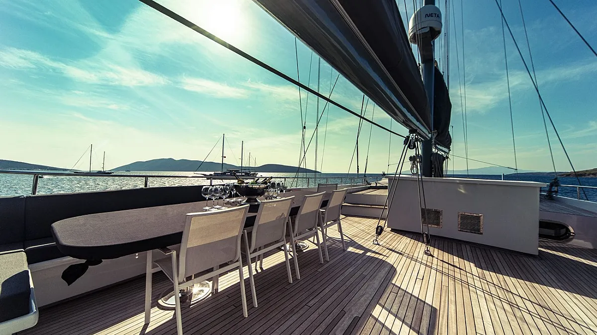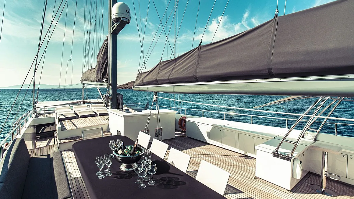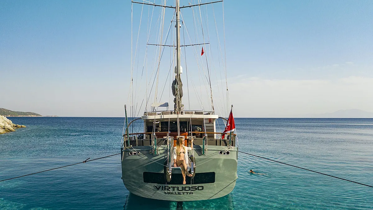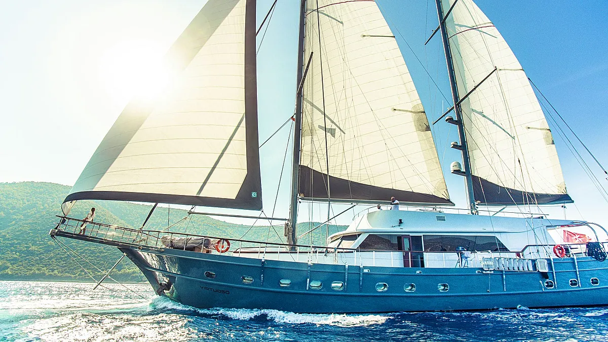 Luxury charter yacht, VIRTUOSO was designed and built in Turkey specifically for luxury charter and has been based in Eastern Mediterranean waters since her launch in 2003. With a strong schooner rig offering the opportunity to "go sailing", guests can spend their time travelling the traditional way through the islands of Greece and along the Turquoise Coast of Turkey.