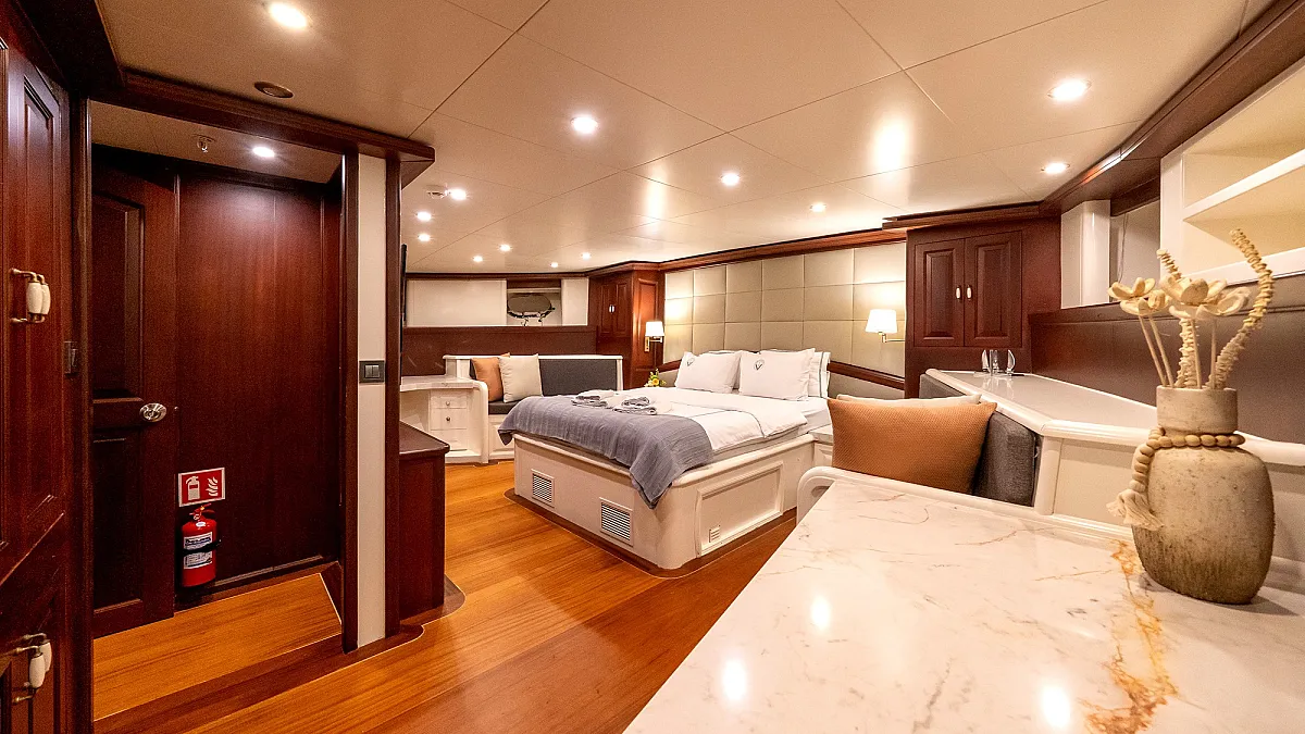 6-cabin luxury gulet VIRTUOSO offers a truly luxury sailing experience for those who wish to cruise in Greece, visit Cyclades islands such as Mykonos, Santorini, beautiful Dodecanese islands, such as Rhodes, Symi, Chalki, Tilos. You can also charter the yacht VIRTUOSO in the Ionian region of Greece.
