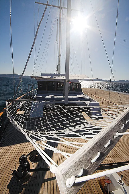 Food, beverages, additional meals, personal expenses, land tranfers, shore excursions, adverse activities (scuba diving, rafting, big game fishing, etc.), guided tours, more than 4 hours of navigation per day (each hour is charged extra), more than 6h of generator work daily, marina fees (the boat goes to marina only on the guests' demand), tips for the crew.