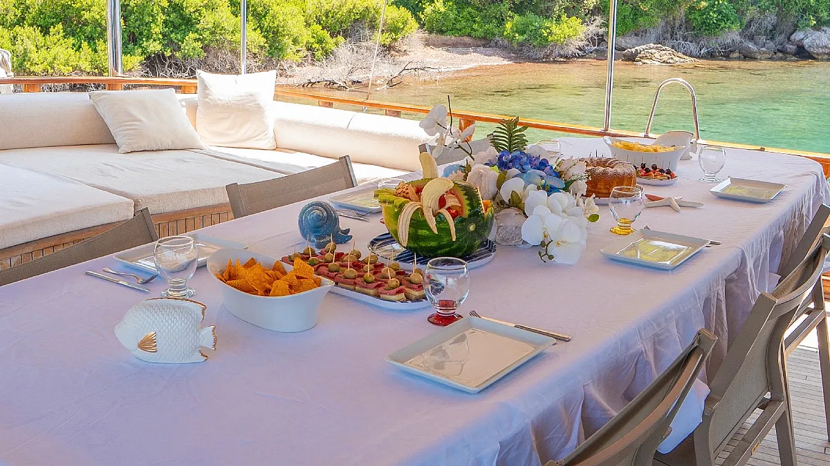 Charter rate includes, cruising fuel for 3-4 hours a day, A/C, all charter & berth taxes, expenses for port procedures in Turkey, clean bed linen and bath & sun towels, use of facilities on board, yacht insurance