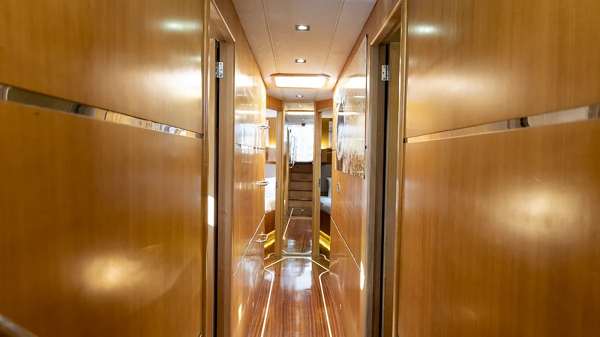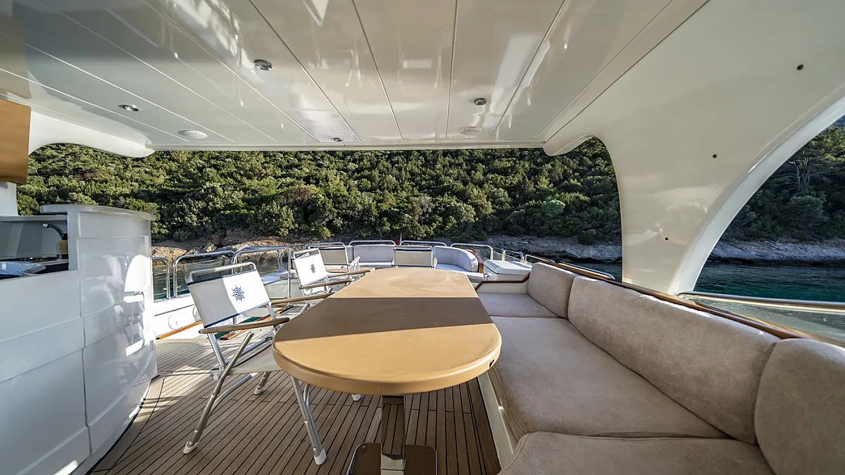 BABOSCH has 4 double staterooms, each with A/C system and ensuite facilities. There is plenty of space for socializing and lounging onboard the yacht, such as a comfortable cushioned seating area, a dining table to enjoy al fresco experience, sunbathing area, and the saloon where it's possible to watch TV and listen to your favourite music.