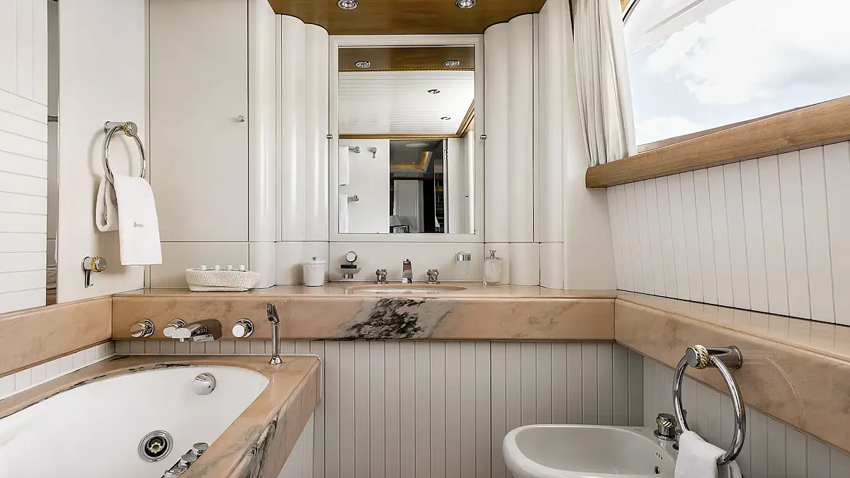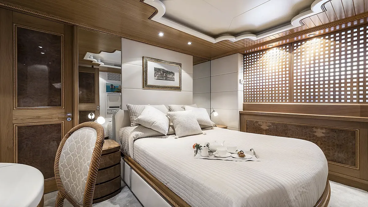 2 VIP cabins with queen beds. Both ensuite bathrooms have a bath tube.