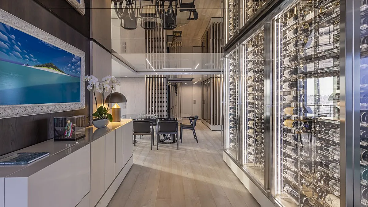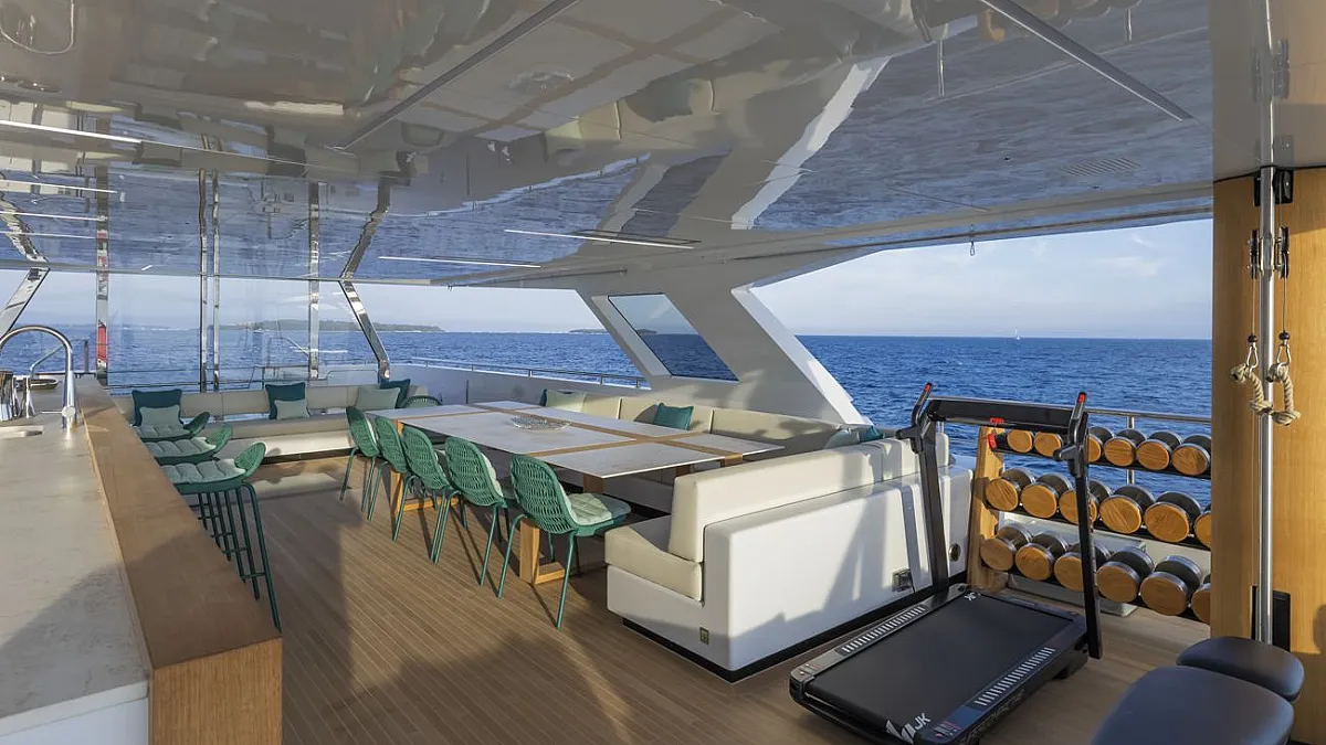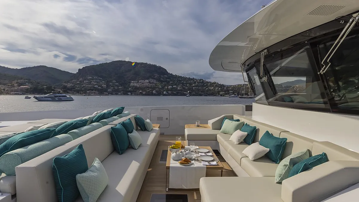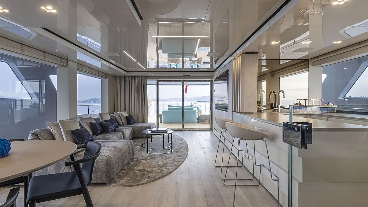 90cm (75in) TV screen in upper deck salon with state-of-the-art home cinema