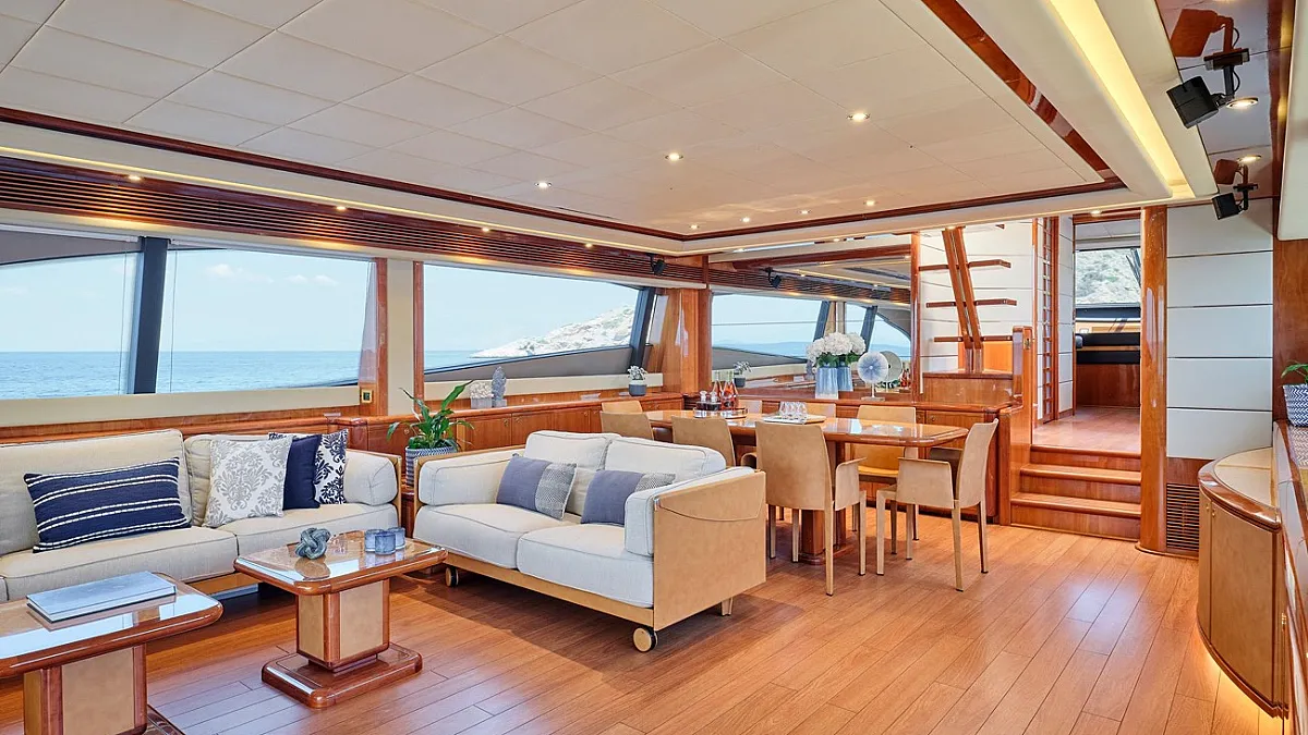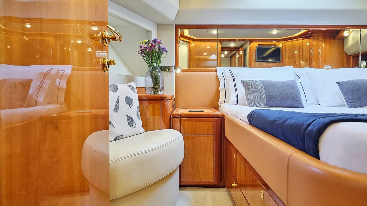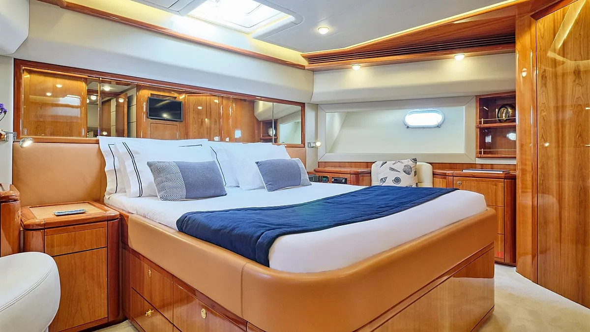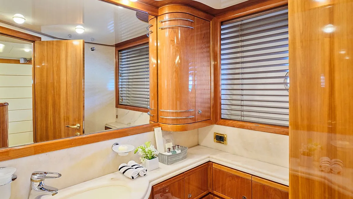 Μaster suite, a VIP cabin and 2 twin cabins one with an extra pullman berth, all with ensuite facilities.