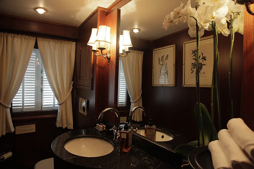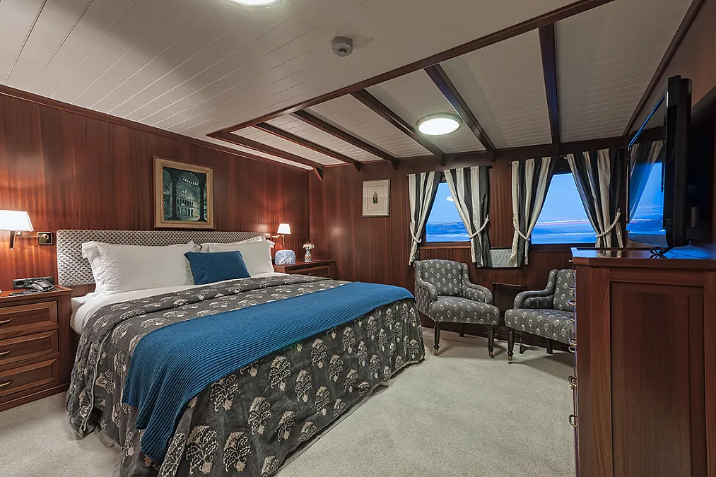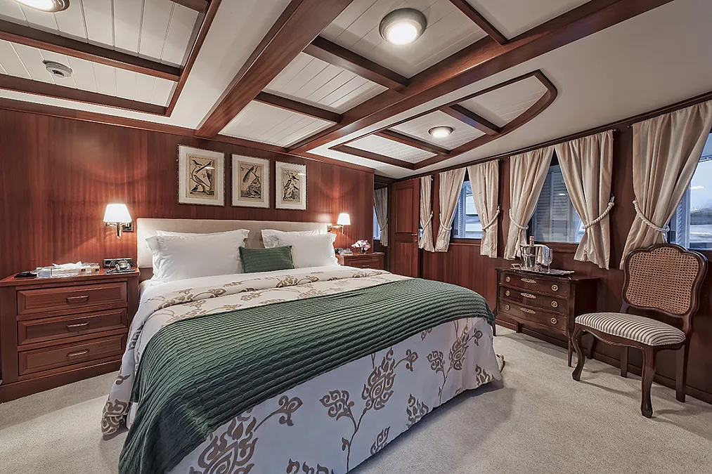 All cabins are decorated with beautiful fabrics and the luxurious Haremlique linens and towels.