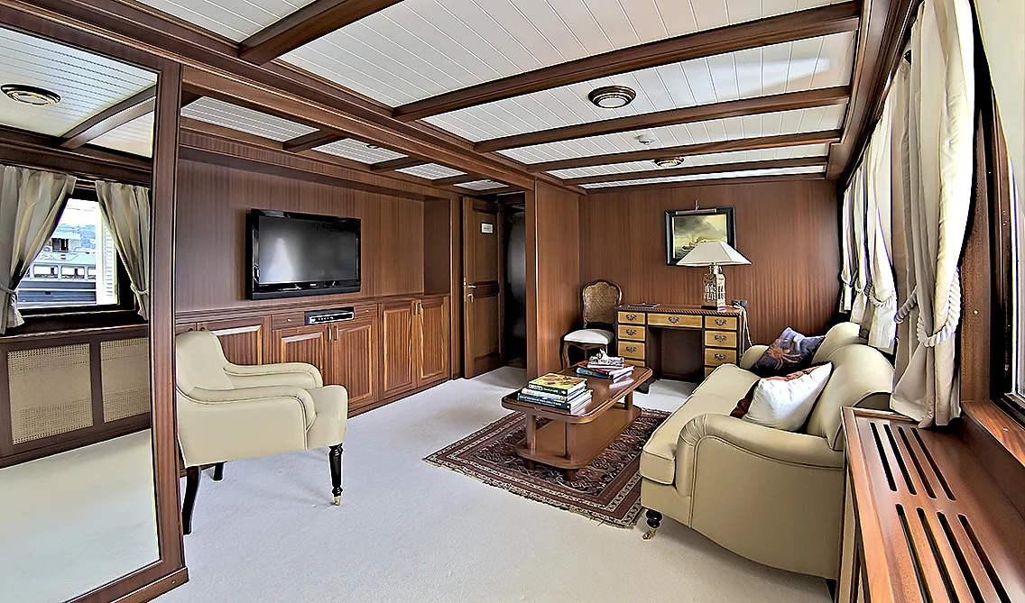 In 2008 the cruiser got new owners. Famous Turkish Koc family, Mustafa and Caroline, purchased the yacht and put her through a major refit. In two year HALAS was transferred into a more luxurious yacht with 12 cabins that can be chartered for special events and luxury yachting holidays in Istanbul and Turkey.