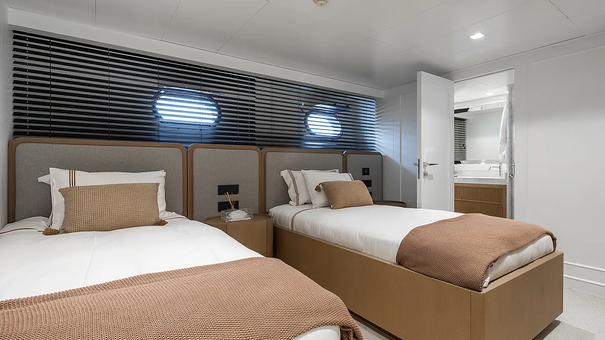 2 Master cabins, 2 Twin and 2 double cabins with convertible beds