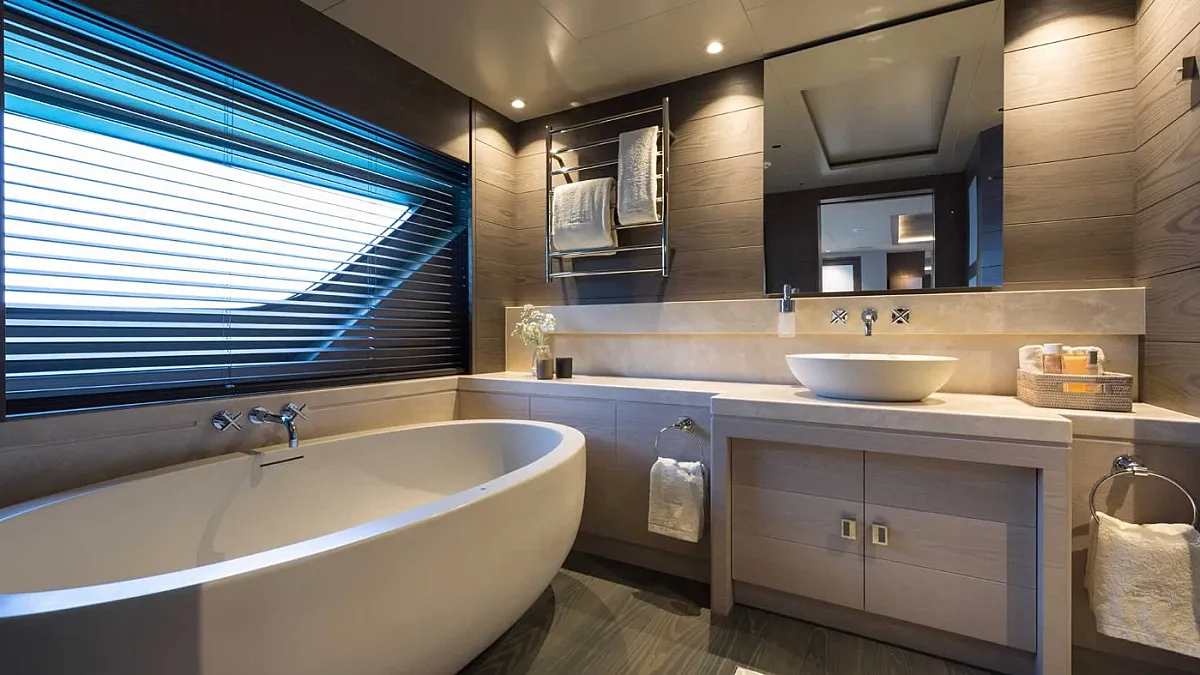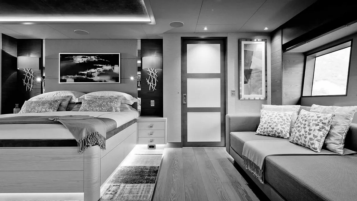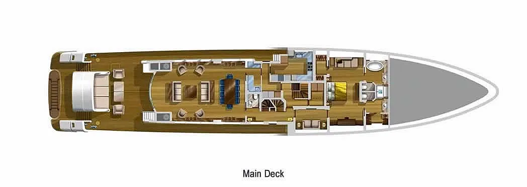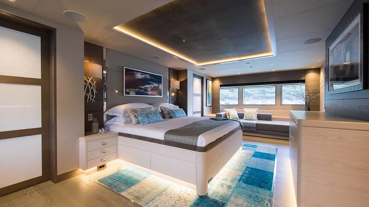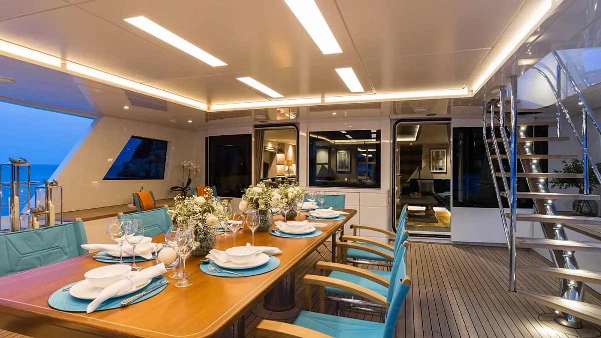 The yacht accommodates 10 guests in 5 ultra-luxury suites. Each is spacious and features all the amenities for a comfortable sailing holiday. Guests are welcome to stay in one full beam master suite with his and her closets and bathrooms, two VIP cabins, and two twin staterooms.
