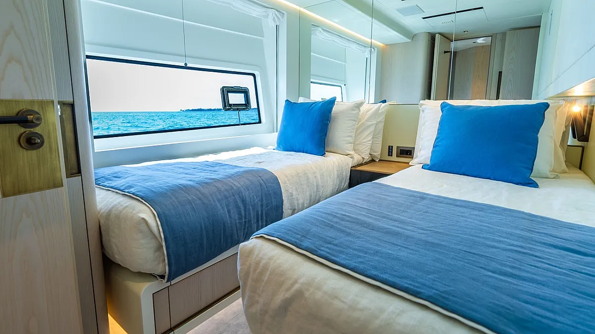 1 master suite, 1 double cabin, 1 Twin and 1 convertible cabin