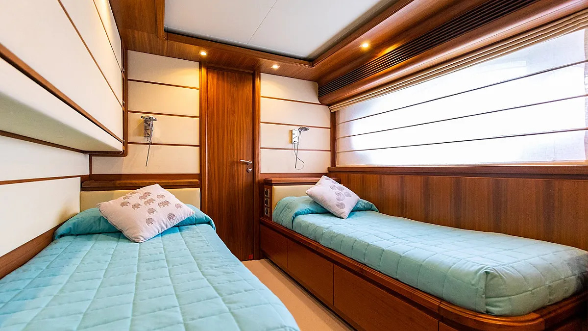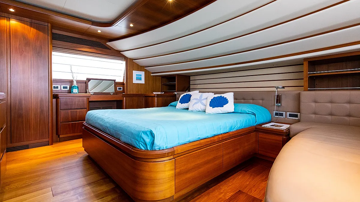 1 Master cabin on the main deck, 2 VIP, 2 Twin with pullman beds
