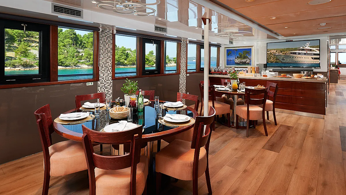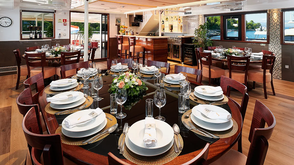 VAT, shipboard accommondation (maximum number of 34 guests sleeping in 17 cabins), fuel for cruising (4 hours/day), crew (10 crew members), unlimited A/C, linen (bed sheets, bathroom and beach towels), Wifi
