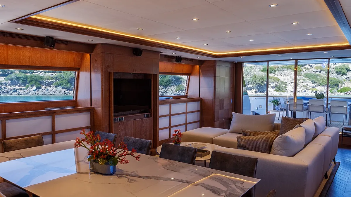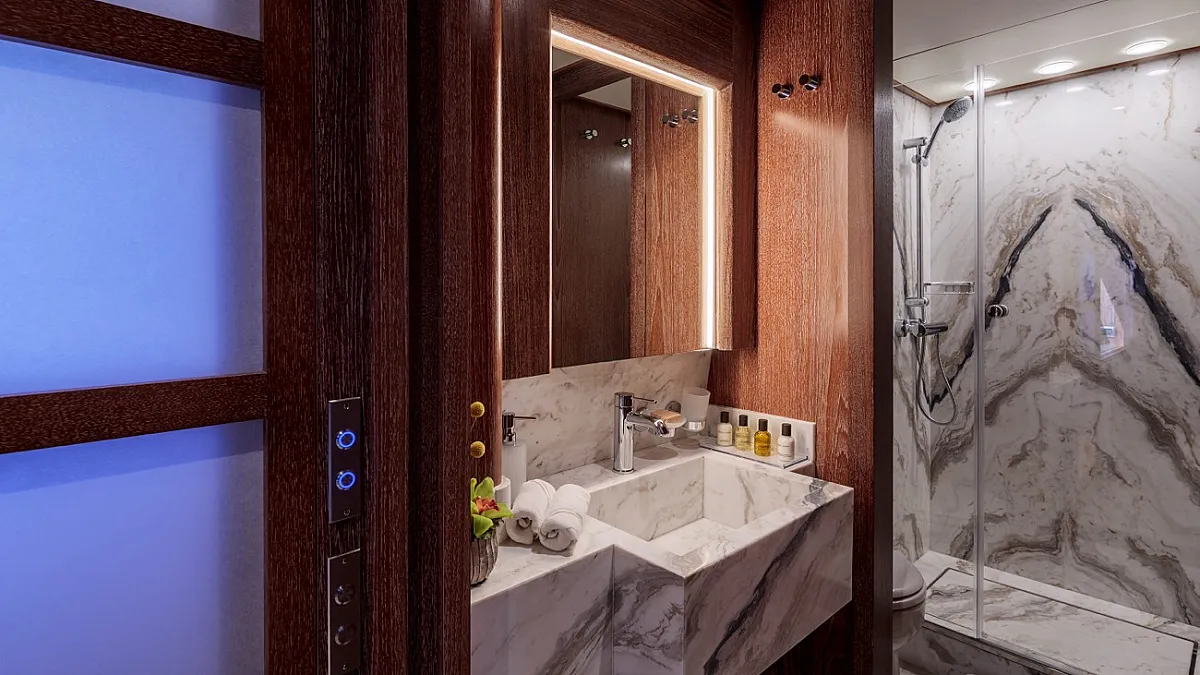 There is a full beam Master and VIP cabin on the lower deck and a double on the main deck. One small double and one twin with pullman beds are also on the lower deck.