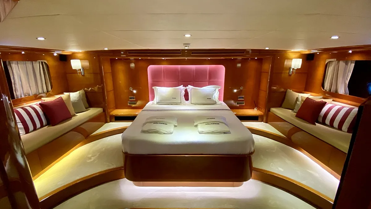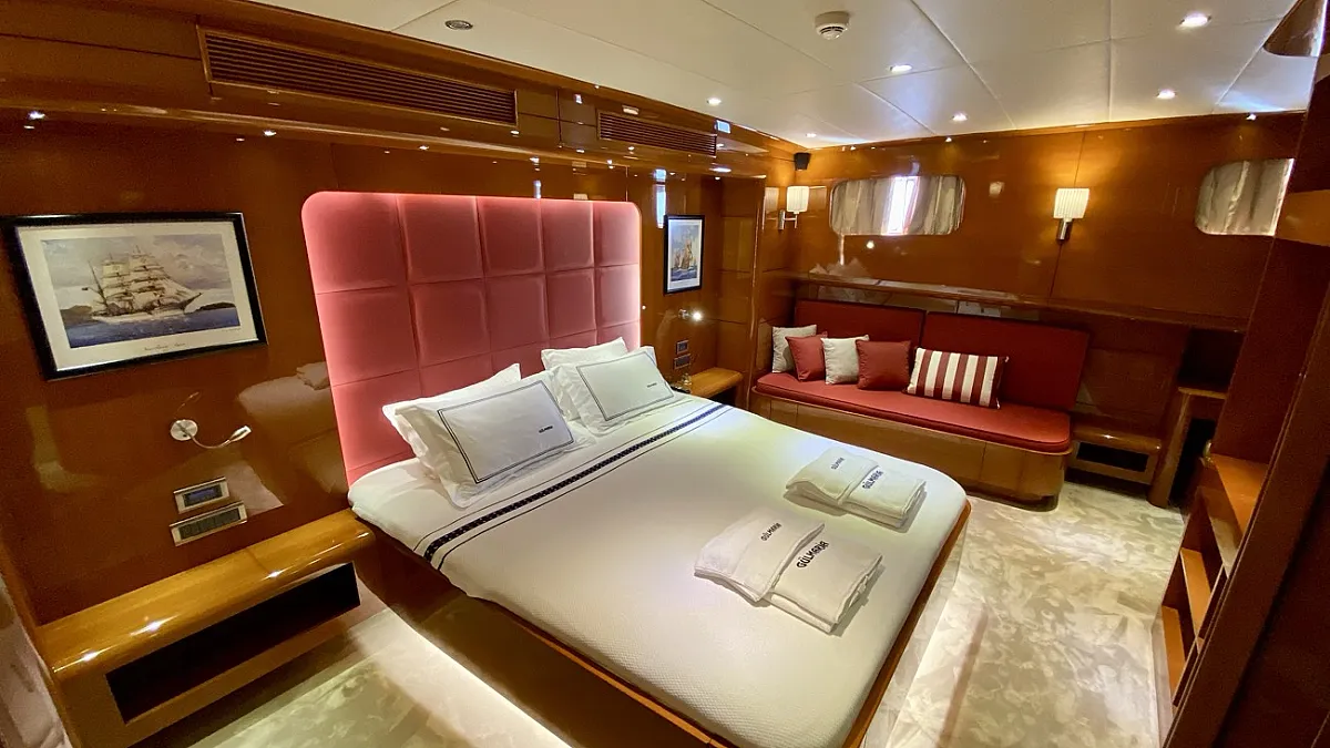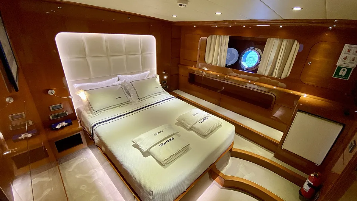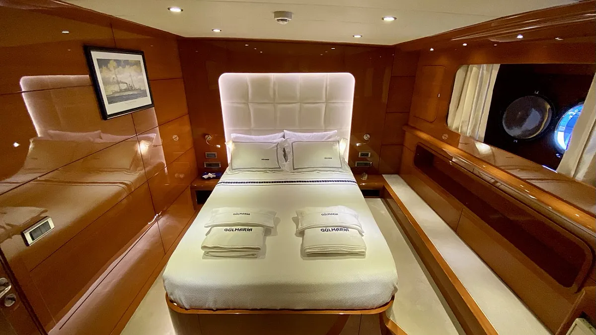 "CANARIA" (ex. Gulmaria) is the encore performance from the designers of the popular, M/S LADY DEISY, a charter yacht which had the kind of chic, Mediterranean casual style which appealed to a broad range of vacationers, and, following three seasons worth of fine tuning, to a certain local gentleman, who now keeps her as his private yacht. In describing "CANARIA" , one could easily say that she is LADY DEISY all over again - lengthened by an additional four metres and offered for parties of up to 12 guests instead of ten - but she is much more: the sleek blue hull of CANARIA holds two full width master cabins, four extra-roomy VIP guest cabins and an abundance of storage space.
