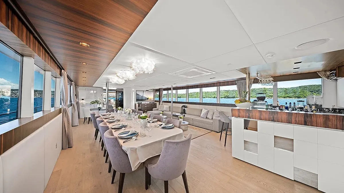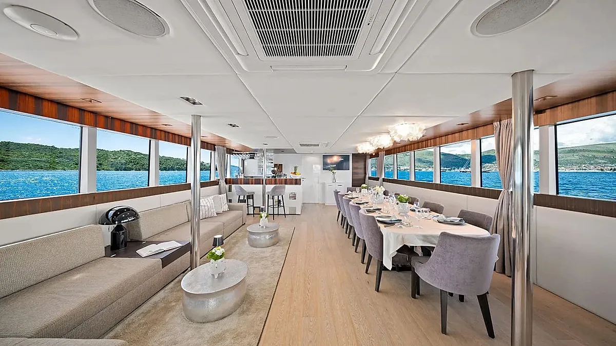 Charter rates include, accommodation on the yacht for maximum 12 guests, fuel for cruising (4 hours/day), crew - 8 crew members, unlimited A/C, linen (bed sheets, bathroom, and beach towels), wifi
