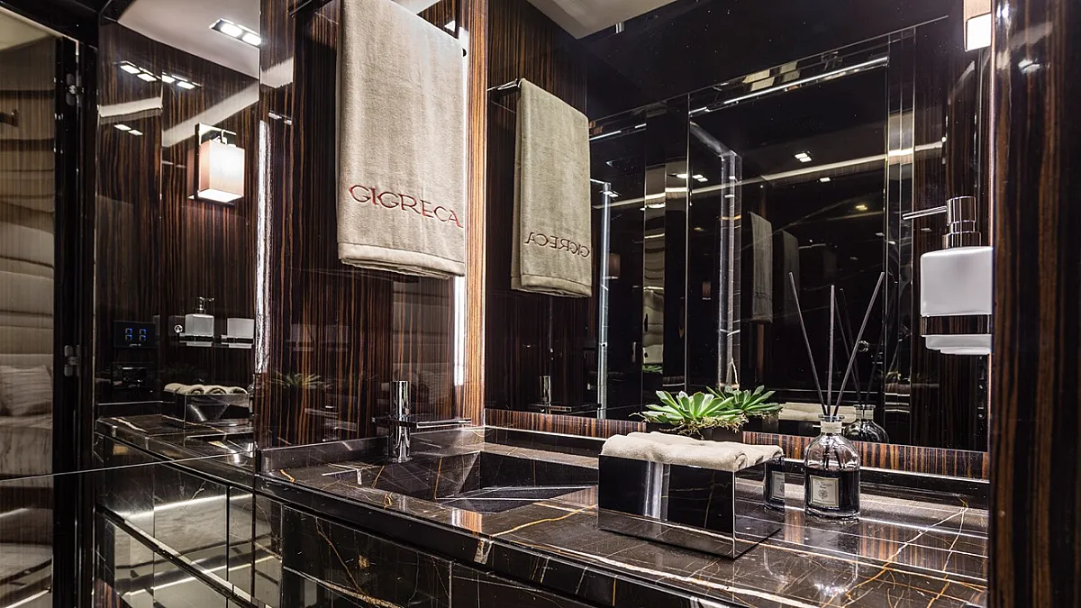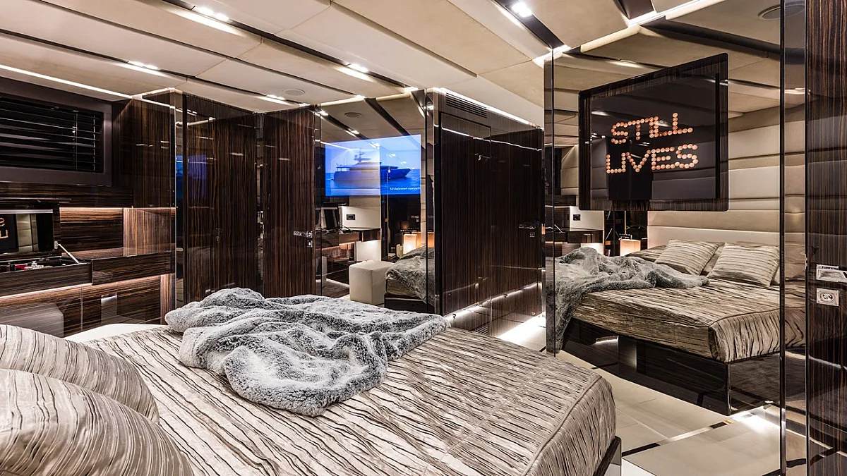 8 x mirror TV’s (by ‘OX-Home’) are fitted throughout the yacht, including bathrooms