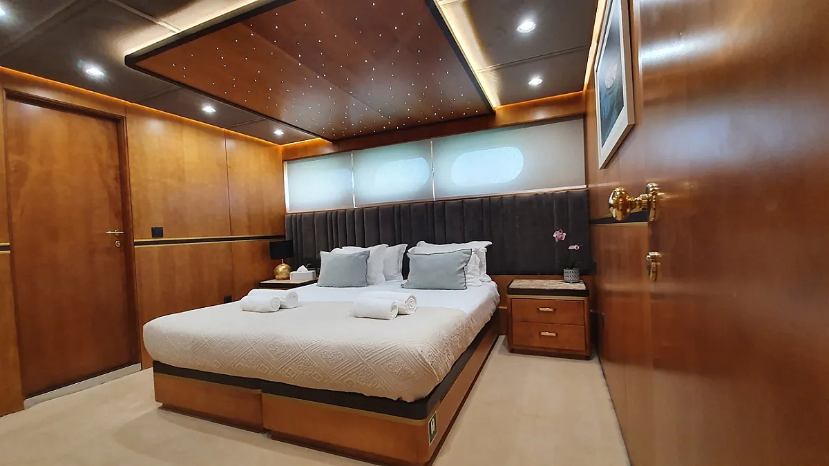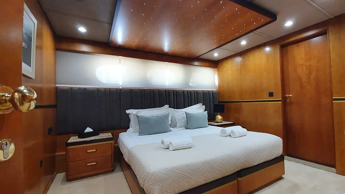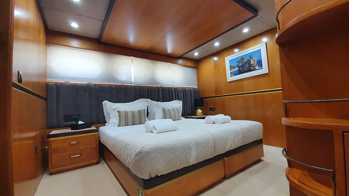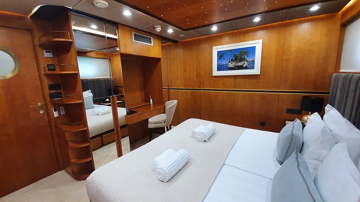 The 7th cabin is on request and only available for a party of 14 (Croatia only), otherwise there are 6 guest cabins on disposal.