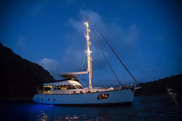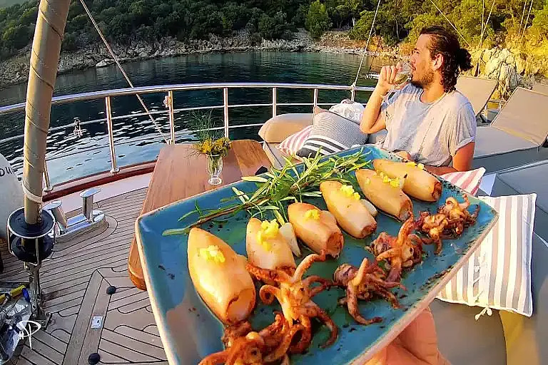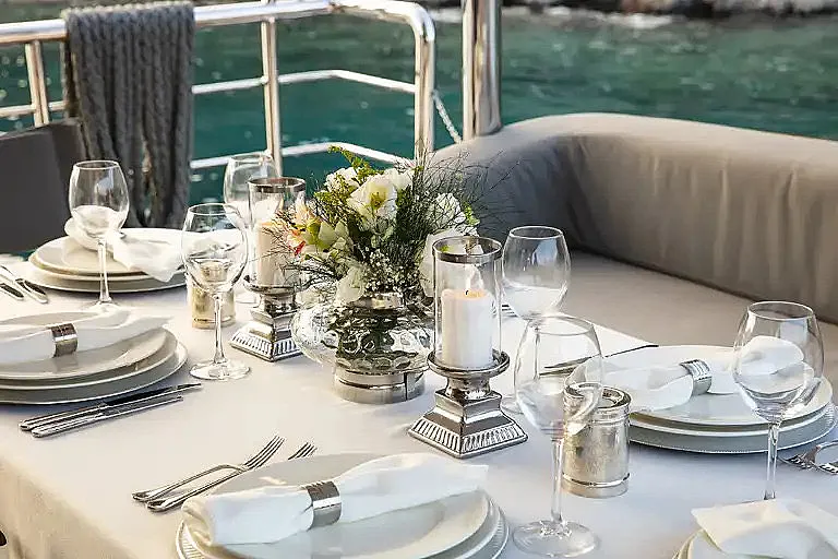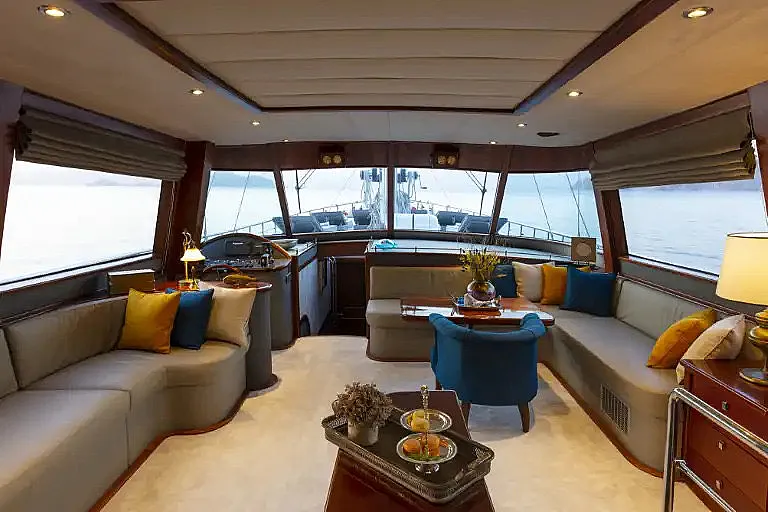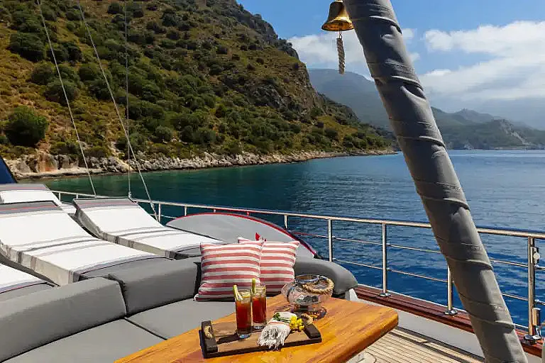 Yacht price includes, crew Services, cruise fuel for maximum 4 hours a day, port expenses in Turkish territorial waters, pedal board, fishing tackle, snorkel and hammock, 24-hour air conditioning, WIFI