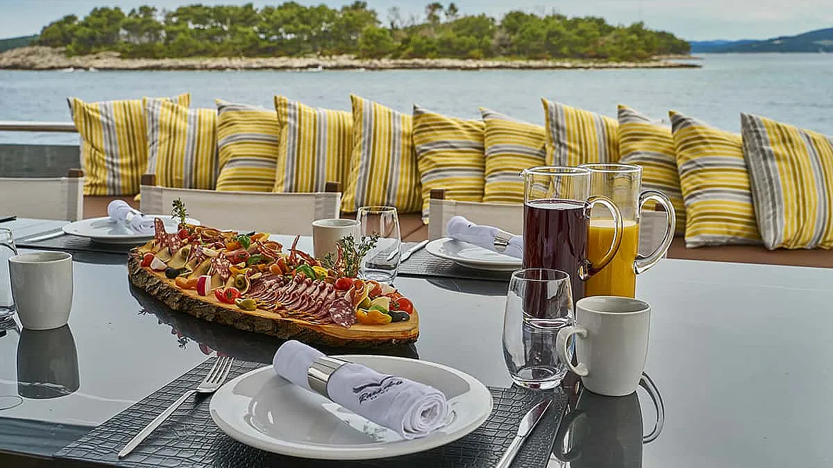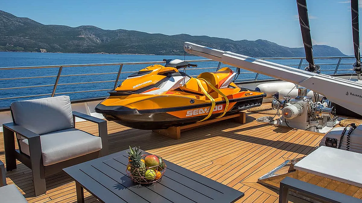 Accommodation on the yacht, 6 crew members, wages and food for the crew, complete linen and towels, yacht insurance, service on board, sojourn taxes, yacht cleaning, use of leisure equipment on board, WiFi.
