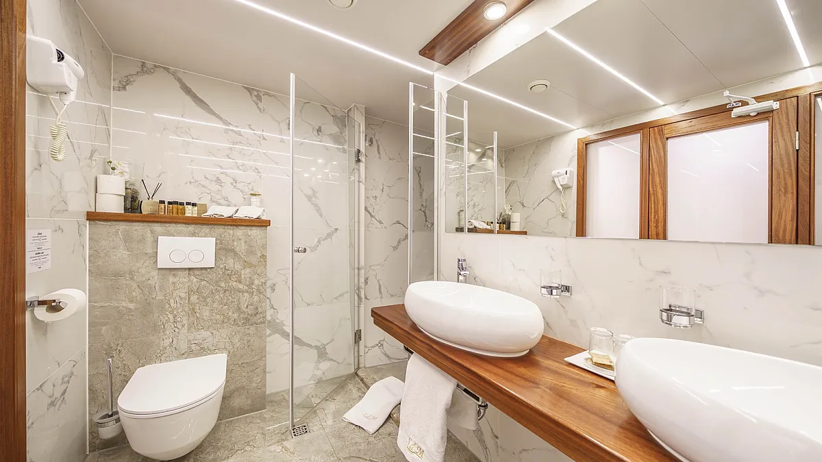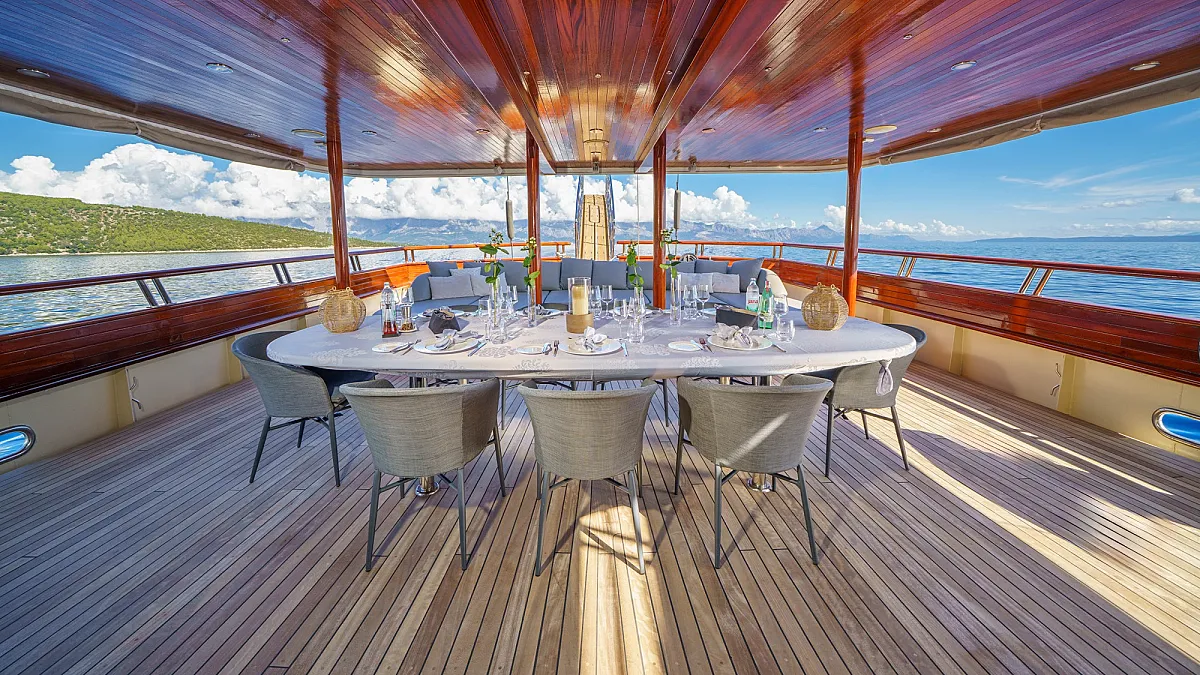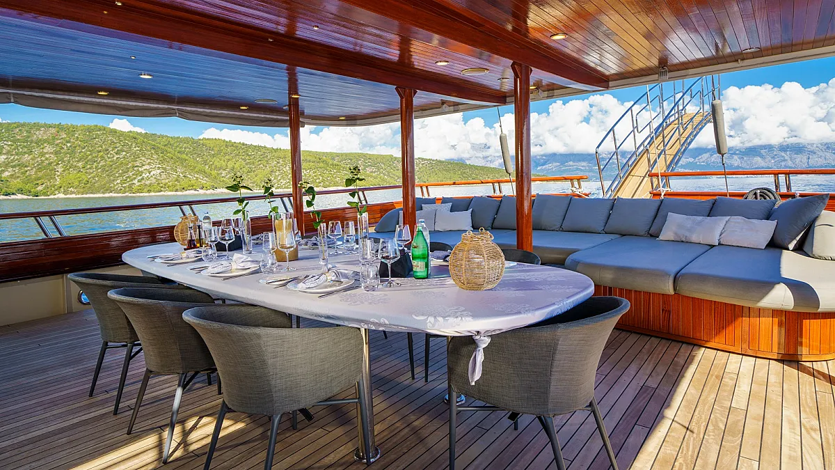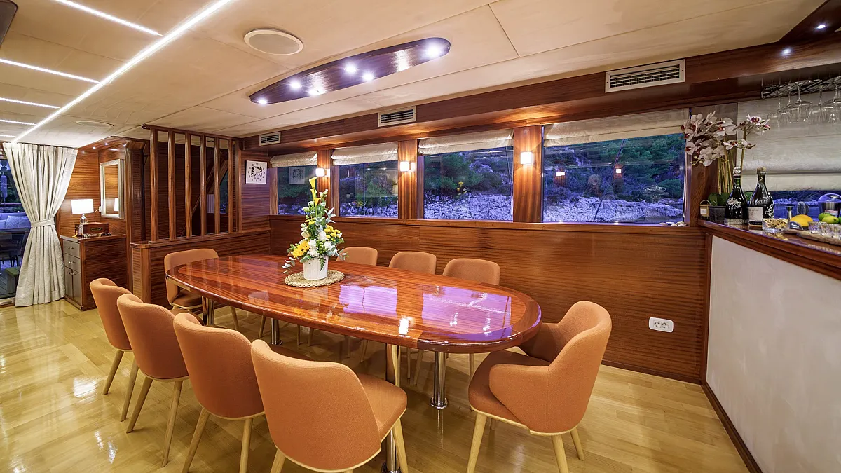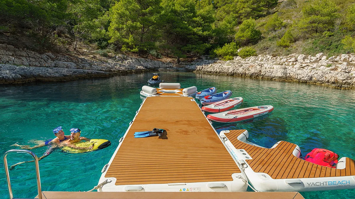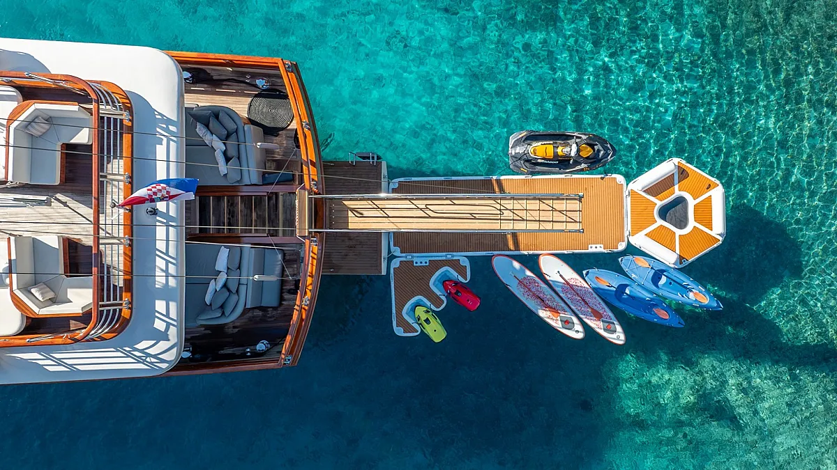 Accommodation for a maximum of 12 guests in 6 cabins, the crew of 8 and their expenses, insurance of the yacht, use of recreational equipment, tourist taxes, and Wi-Fi.